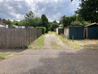 From Attleborough, head towards Thetford along the A11. Proceed for approximately 4 miles, turning left onto the B1111 and continue into East Harling. Turn right onto West Harling Road, after a short distance turn right into The Park and the opening to the garages will be found in between nos. 24 and 25.