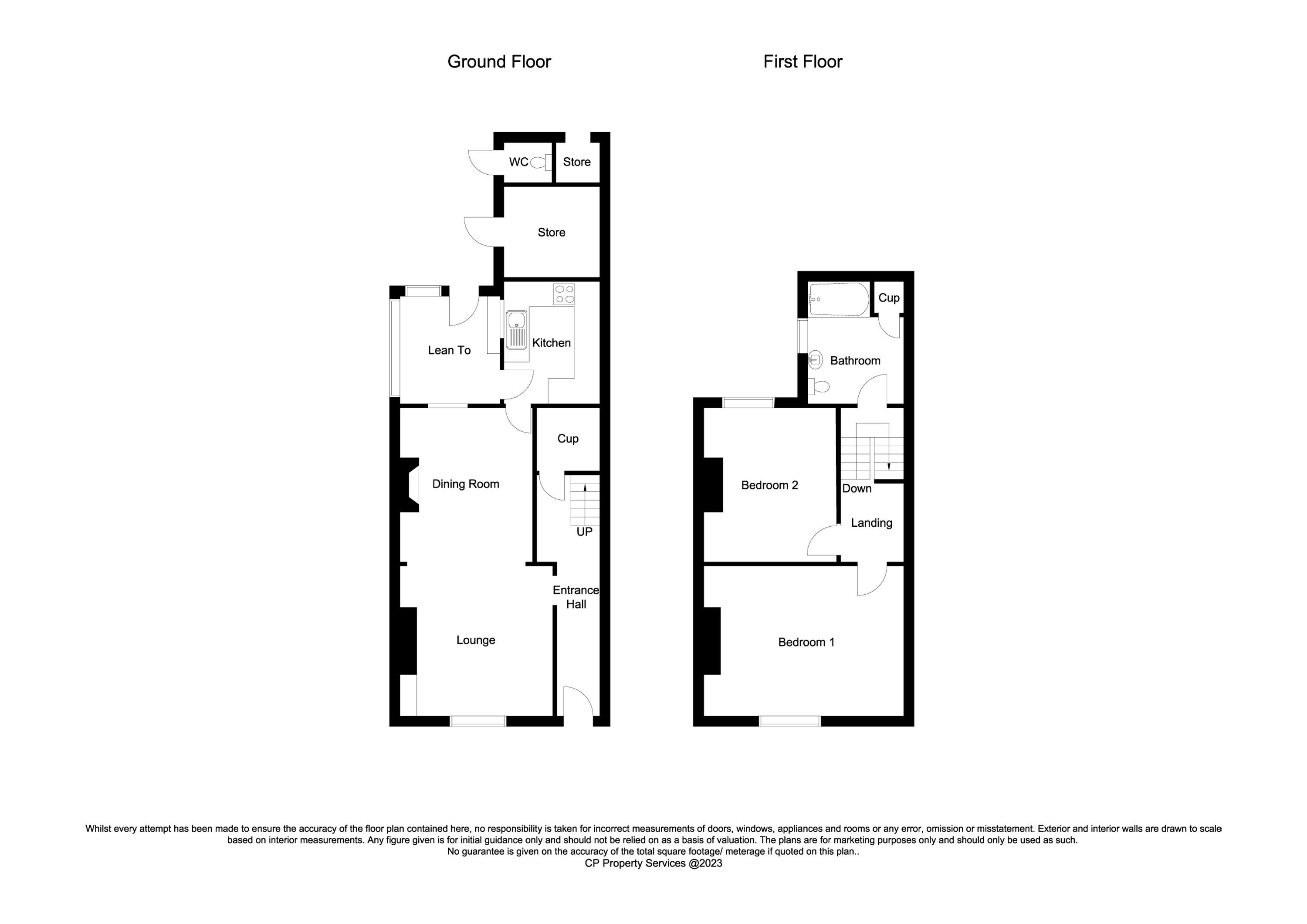 Presently arranged with entrance hall, through sitting room/dining room, kitchen and rear porch to ground floor. Upstairs, half landing with house bathroom, main landing and 2 bedrooms.
