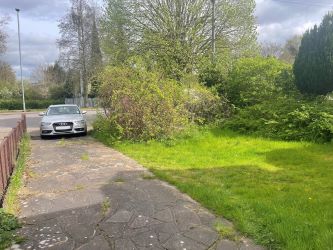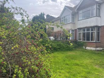 Outside, the property is well set back from what is a very busy road and there is a dilapidated garage at the rear, with shed and a fairly long garden.