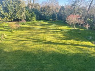 The grounds are divided up and well landscaped and fairly private, being mainly laid to lawn with specimen trees.
