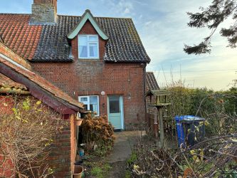 A two bedroom semi-detached cottage occupying a good plot of land in a rural position on the edge of the Waveney Valley in Suffolk, close to Bungay and Harleston.