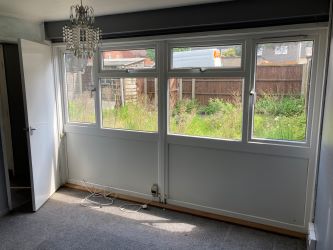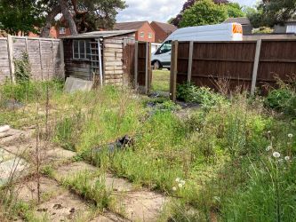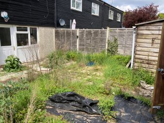 Outside, front and rear gardens both require attention.