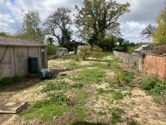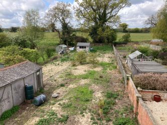 Outside the front garden is laid to grass with off road parking and a driveway leads to a timber/asbestos style garage. The good sized rear garden requires attention and has field views to the rear.
