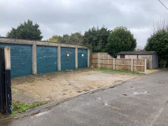 A block of four garages of concrete sectional construction with up and over doors.