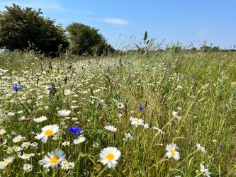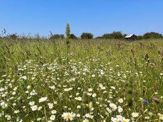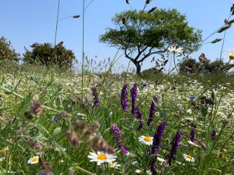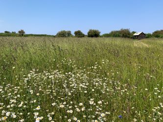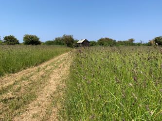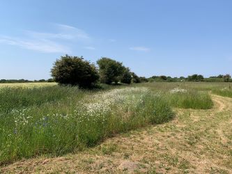 The land has been extensively cleared and re-wilded with swathes of wildflowers and meadow grass. The sowing includes presentation seed mixture and special meadow flowers and grasses including cornfield mixture.